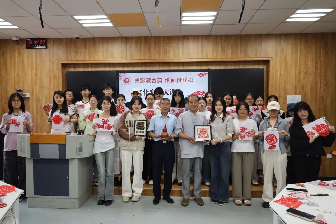 窗纳千枝碧,红纸漾湖风。5月22日,好色视频 开展“剪影藏古韵 纸间传匠心”文化育人大课,邀请国家级非物质文化遗产——烟台剪纸项目代表性传承人韩月湖担任主讲。